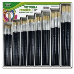 Pennello punta piatta serie 577 - punta a spatola in pura setola - Lebez - Assortimeno vetrinetta 168 pezzi
