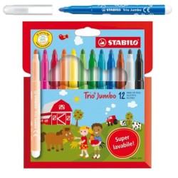 Pennarelli Trio Jumbo - punta 3,0 mm - colori assortiti - Stabilo - astuccio 12 pezzi