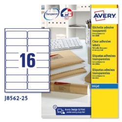 Etichette adesive J8560 - in PE - inkjet - permanenti - 63,5 x 38,1 mm - 21 et/fg - 25 fogli - trasparente - Avery