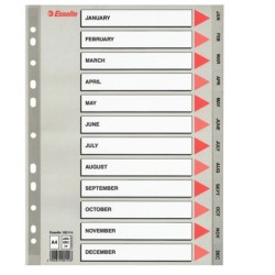 Separatore numerico 1/12 - PP - A4 - 22,5x29,7 cm - grigio - Esselte