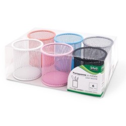 Bicchieri portapenne - rete metallica colorata - 8,5 x 10 cm - Lebez - conf. 6 pezzi