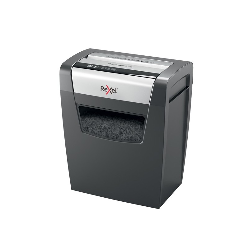 Il potere di distruggere di più! Rexel momentum X312 distrugge fino a 12 fogli per volta. Livello di sicurezza P3 con taglio a frammenti da 5x42 mm. Silenzioso, con pulsanti di controllo a sfioramento semplici e intuitivi per un facile utilizzo e una generosa capacità del cestino da 23 litri. Tipo di taglio: frammento Dimensioni di frammento: 5x42mm Livello sicurezza: DIN P3 Imboccatura: 220mm Capacità di taglio: 12 fogli Capacità cestino: 23lt Ciclo di lavoro: 6min Ciclo di riposo: 60min Livello rumorosità: 62dB Funzione Jam Prevention: si Distruzione graffette e punti: si Distruzione Credit Cards/CD: no Pulizia automatica lame: no Autolubrificazione lame: no Voltage: 220v/240v 50hz/60hz Consumo energetico: 280 W Consumo energetico in modalità Standby: 1.5w Power Cord / Plug: Fixed Garanzia: 2 anni Dimensioni: 380x420x275 mm Peso: 6,5Kg