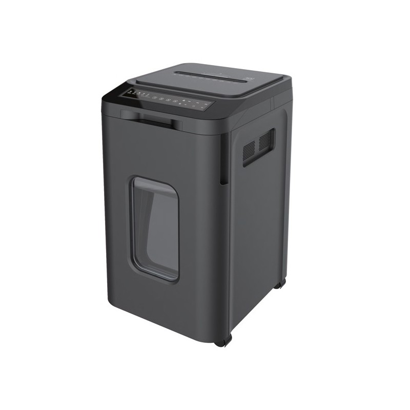 Distruggidocumenti automatico con taglio a frammenti semplice ed affidabile dotato di comode ruote per agevolarne lo spostamento.