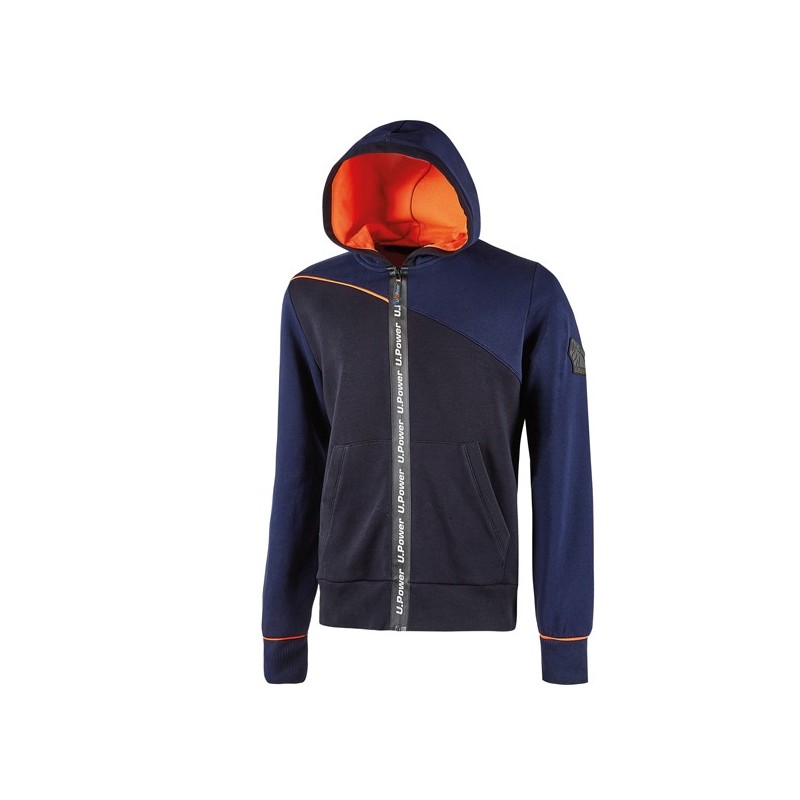Felpa Jupiter - con cappuccio - taglia XL - blu/arancione - U-Power