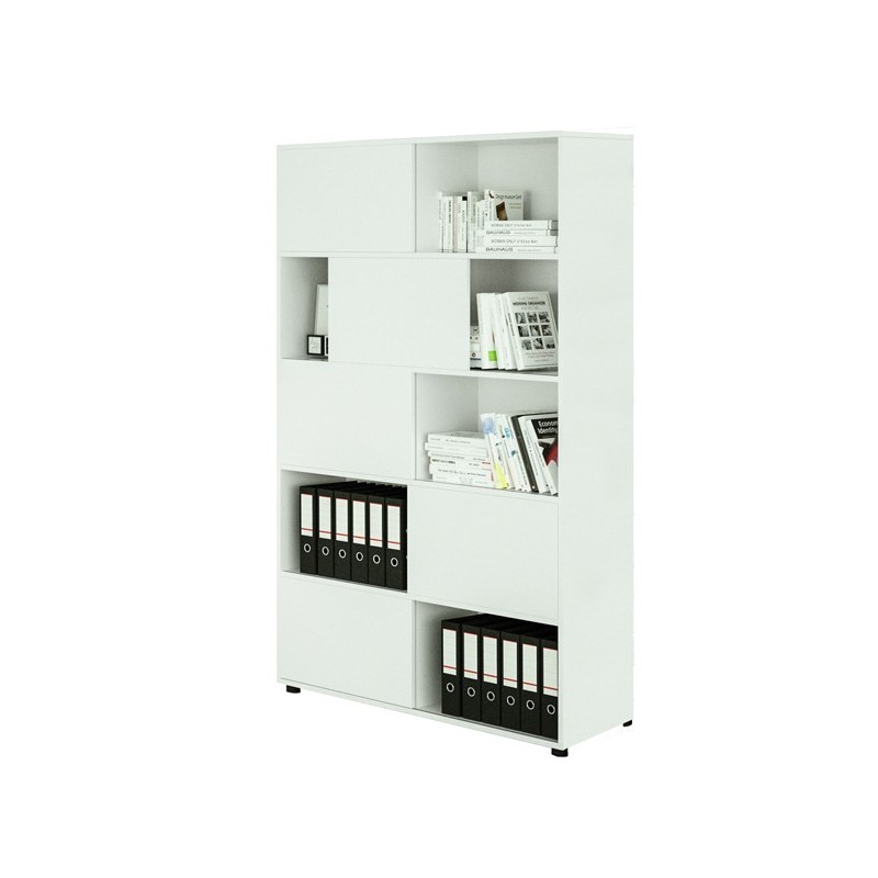 Libreria alta Tetris a 5 ripiani ante scorrevoli - 120x35x191 cm - bianco - Artexport