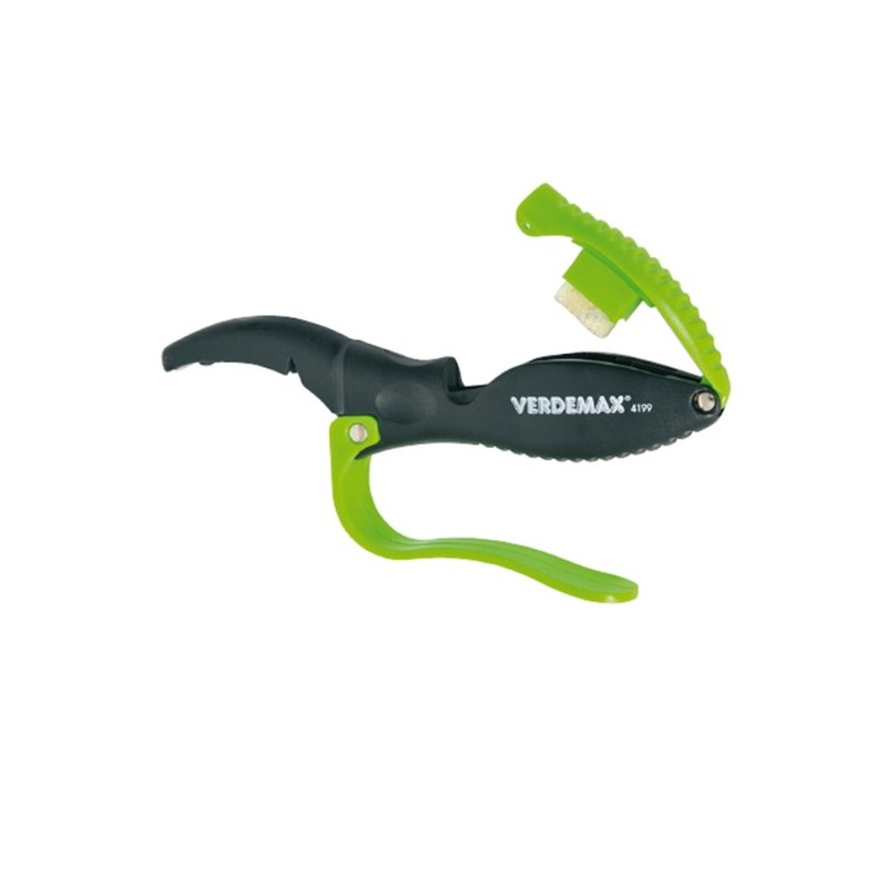 Affilatura laterale per lame lunghe, affilatura superiore per lame corte. Spazzolina imbevuta d’olio per lubrificare le lame. Cappuccio in plastica per protezione.