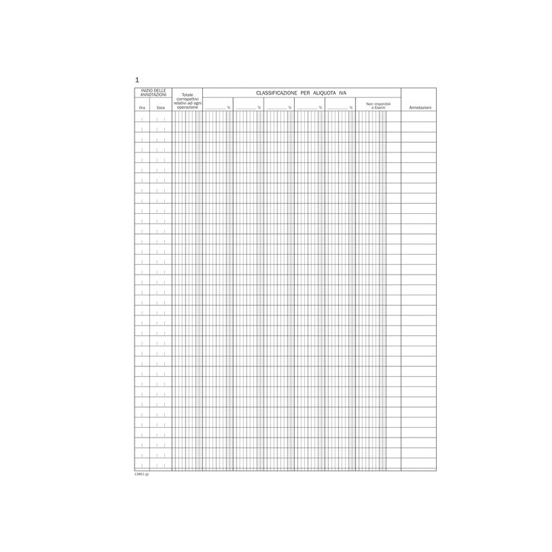 Registro corrispettivi a più aliquote per mancato o irregolare funzionamento dei Registratori di Cassa. 46 pagine numerate. Formato 31x24,5cm.