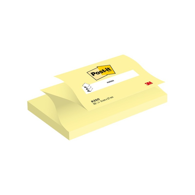 Incollatura a fisarmonica un foglietto tira l'altro. Utilizzabili con uno dei tanti dispenser per foglietti Post-it Z-Notes. Ogni blocchetto contiene 100 foglietti riposizionabili. Formato 76x127mm. Colore: giallo Canary. Nuove confezioni in cartoncino riciclato.