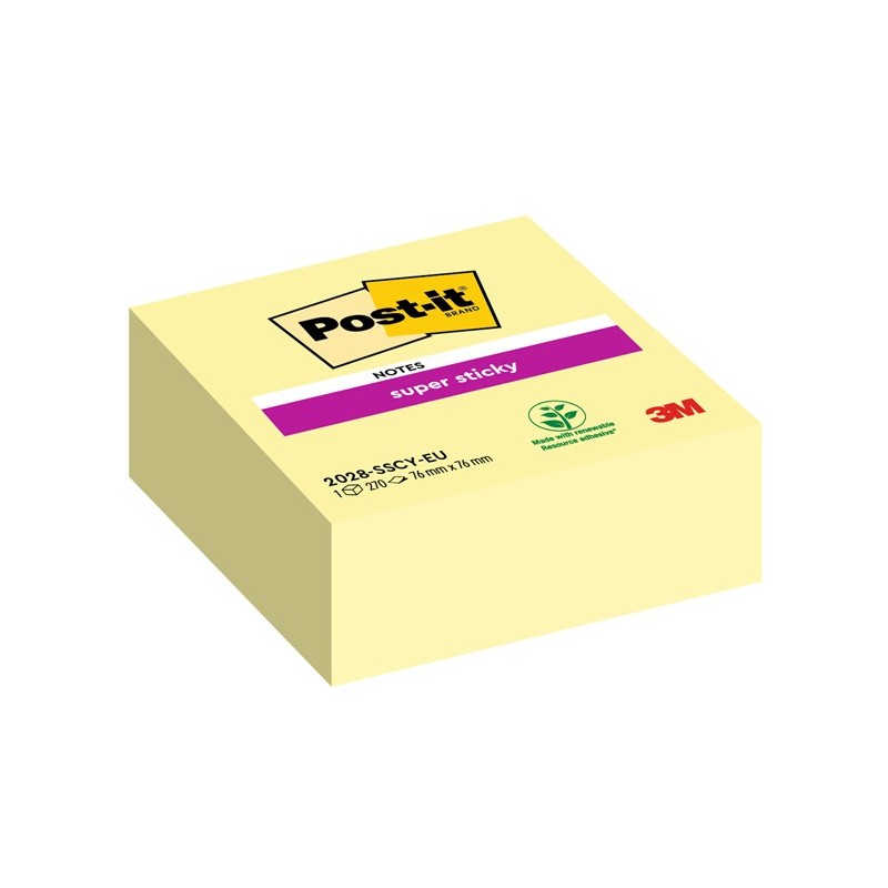 Cubo di blocchetti da 270 foglietti riposizionabili colore Giallo Canary. Grazie all'adesivo rinforzato si attaccano praticamente su tutte le superfici e non lasciano traccia. Ideali per superfici difficili o verticali. Formato 76 x 76mm.