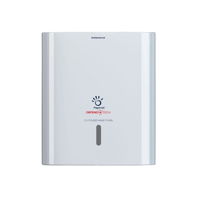 Il dispenser Defend Tech bianco per asciugamani piegati C e V permette una facile dispensazione dei fogli grazie anche ad un pratico adattatore e le sue dimensioni contenute lo rendono ideale anche per spazi piccoli.