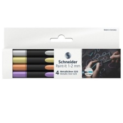 Roller Metallic 050 - tratto 0,4 mm - colori metallici assortiti - Schneider - astuccio 4 pezzi