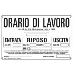 Cartello segnalatore - 30x20 cm - ORARIO DI LAVORO - alluminio - Cartelli Segnalatori