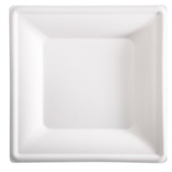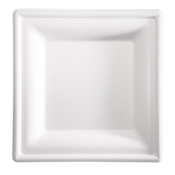 Piatto piano monouso - quadrato - 16 x 16 cm - canna da zucchero - bianco - Signor Bio - conf. 50 pezzi