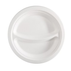Piatto piano a 2 scomparti monouso - rotondo - diametro 23 cm - canna da zucchero - bianco - Signor Bio - conf. 50 pezzi