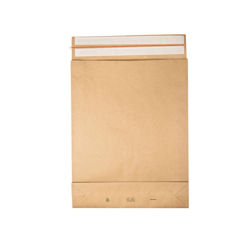 e-Green, sacchetti ideali per tutte le spedizioni di merci che non richiedono una scatola, o preimballate come articoli di abbigliamento, scarpe, accessori, cosmetica, elettronici e molto altro. Capiente come una scatola. Si espande e si adatta al contenuto. Ideale per conteuti voluminosi e squadrati. Apertura facilitata “Tear Off”. Grazie alla doppia striscia adesiva, questo sacchetto può essere riutilizzato, ad esempio per il reso degli ordini on-line. Dati tecnici: F.TO INTERNO (mm): 450 X 570 X 100 +100 CHIUSURA: 2 strip MATERIALE: KRAFT COLORE: avana GR/Mq: 125 gr/Mq