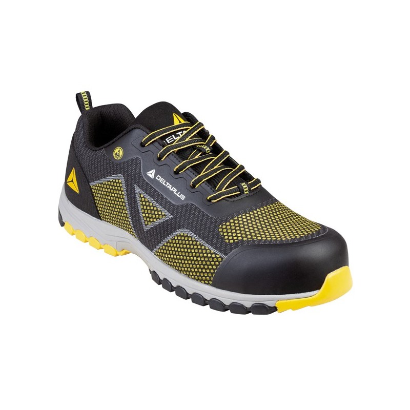 Calzatura di sicurezza con tomaia : PU iniettato mesh. Fodera : poliestere. Soletta di pulizia : Staccabile preformata - In poliestere su EVA. Suola : Saldata - Phylon. Strato d’usura : Caucciù nitrile. Scarpa Amagnetica. Colore nero e giallo. Buona resistenza all'abrasione e al calore di contatto (HRO = 300°C per 1 minuto)