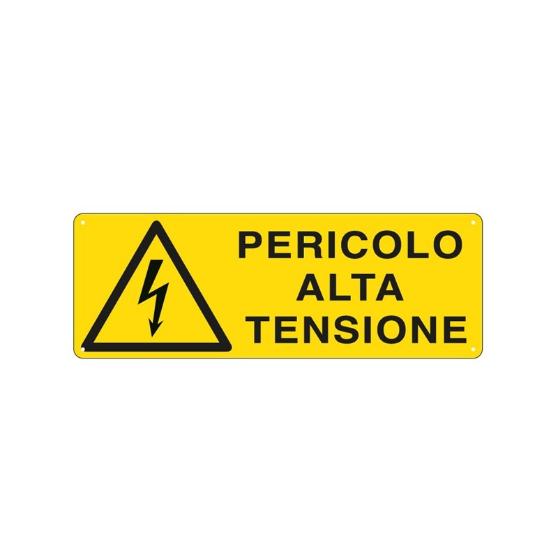Cartello segnalatore - 35x12,5 cm - PERICOLO ALTA TENSIONE - alluminio - Cartelli Segnalatori
