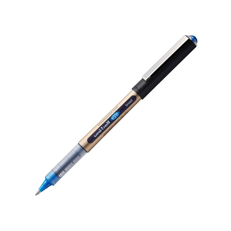 Roller uni-ball EYE ad inchiostro liquido. Resistente all'acqua e alla luce. Sistema "Uni-Flow" per flusso uniforme e costante. Scrittura scorrevole e precisa. Finestrella per il controllo del consumo di inchiostro. Punta 1.0mm.