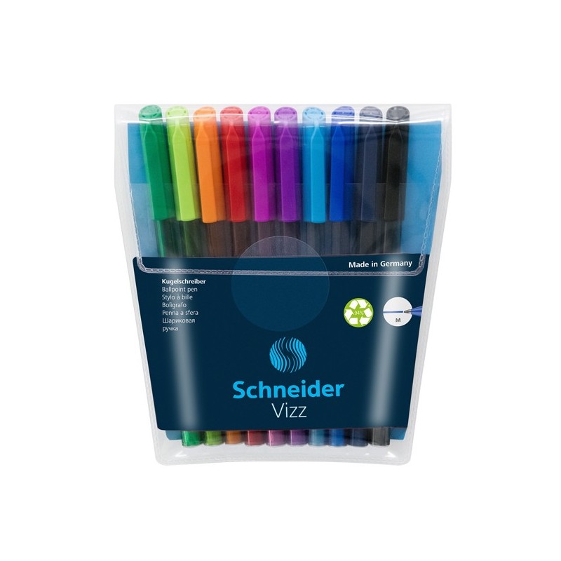 Penne a sfera Vizz - con cappuccio - punta media - colori assortiti - Schneider - astuccio 10 pezzi