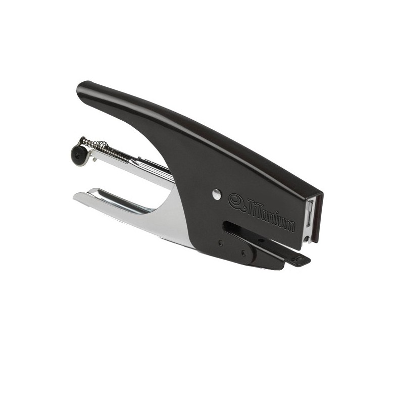 Struttura in acciaio cromato e verniciato. Profondità cucitura: 46mm; Capacità di cucitura: max 15fg; Tipo di punto: chiuso Capacità di ricarica: 200 punti; Punto utilizzato: 6/4 Colore: nero