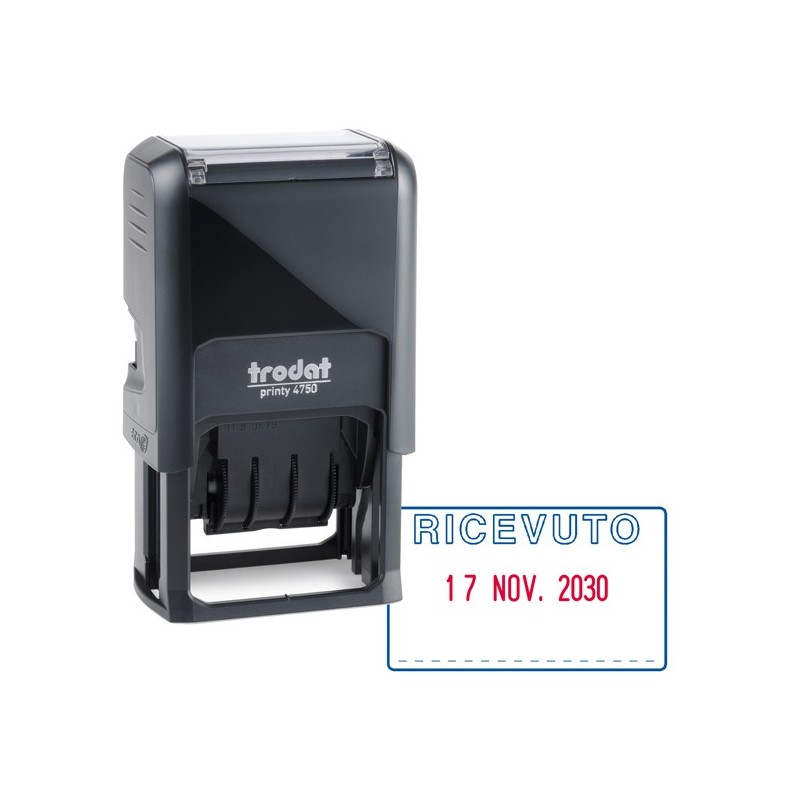 Timbro Printy 4750/L autoinchiostrante - DATA + RICEVUTO - 41x24 mm - 4 mm - bicolore -Trodat