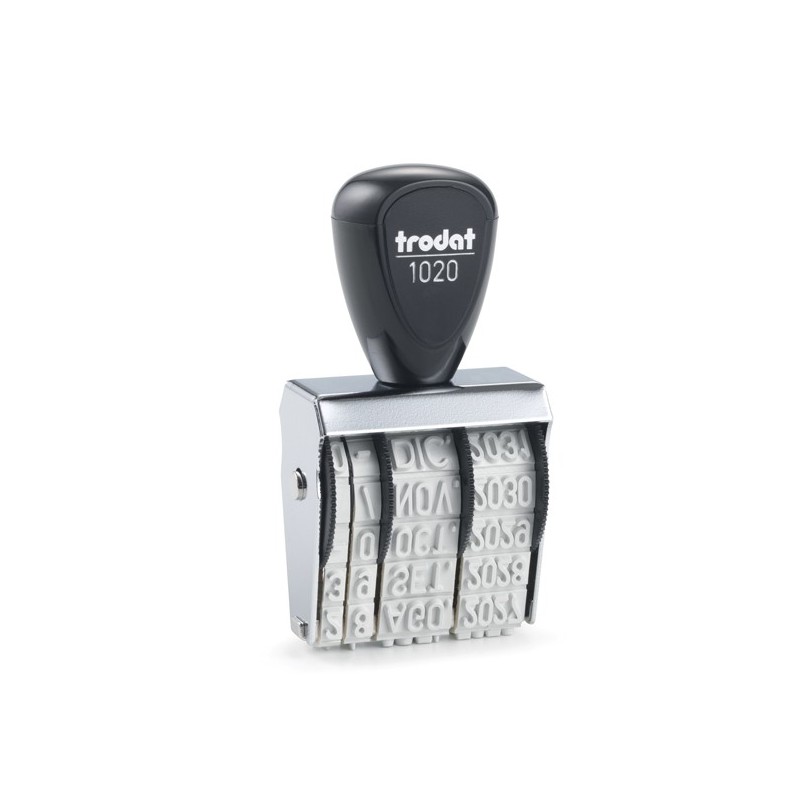 Datari manuali in gomma. Semplice regolazione della data. Da usare con cuscinetto per timbri supplementare. Altezza carattere 5mm.