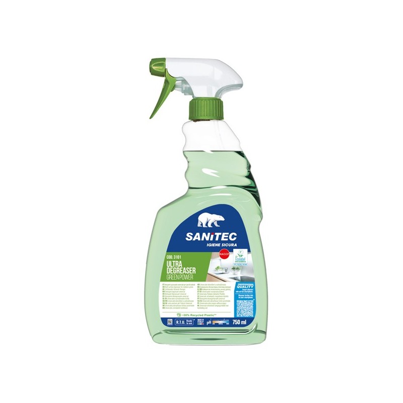 Sgrassatore professionale universale profumato. Ipoallergenico con materie prime di origine vegetale. Idoneo ai piani HACCP. Certificato Ecolabel.