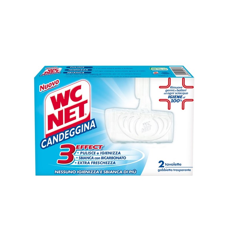 WC Net tavoletta Candeggina rimuove germi e batteri ad ogni sciaquo, assicurando igiene al 100%. Grazie alla sua speciale formula. sbianca il WC anche sotto il livello dell'acqua
