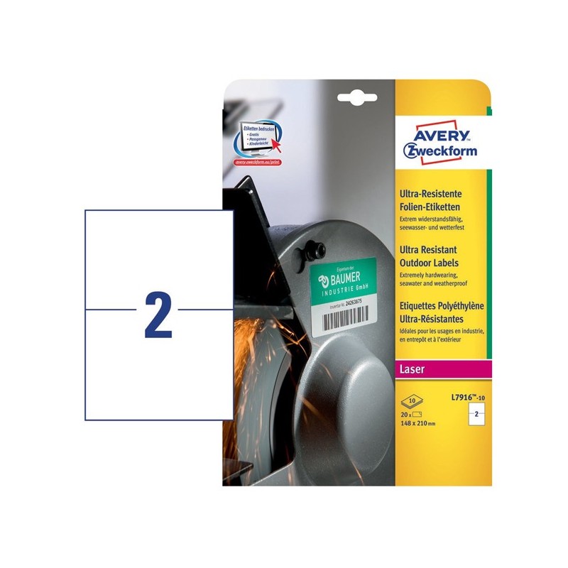 Etichette in polietilene per protezione e sicurezza - 210 x 148 mm - bianche - laser - 10 fogli - 2 et /fg - Avery