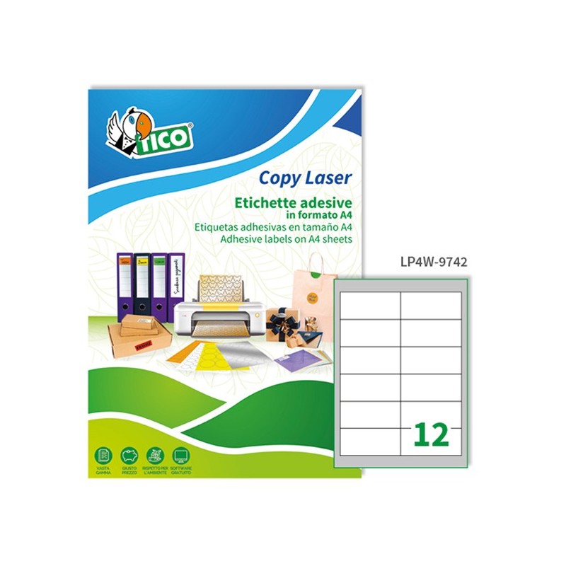 Etichette adesive LP4W - in carta - angoli arrotondati - permanenti - 97 x 42,3 mm - 12 et/fg - 100 fogli - bianco - Tico