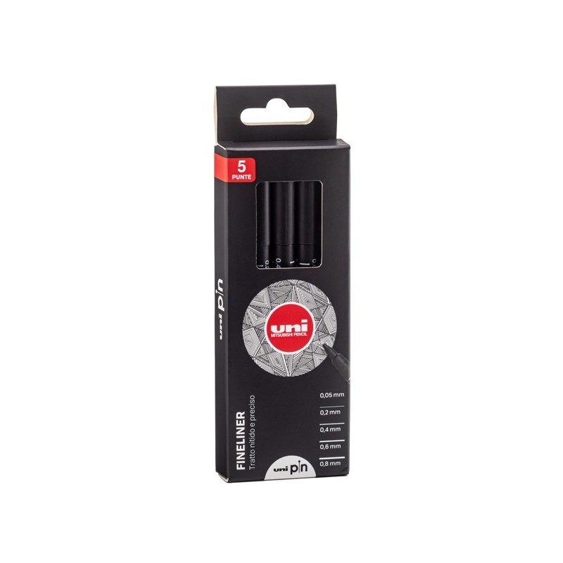 Marcatore a penna a inchiostro pigmentato, resistente alla luce e all'acqua, per una lunga durata. Per un tratto preciso e nitido. Ideale per disegni tecnici e professionali. Fusto in plastica con cappuccio antisoffocamento. Astuccio con 5 gradazioni assortiti: 0.1, 0.2, 0.3, 0.5 e 0.8