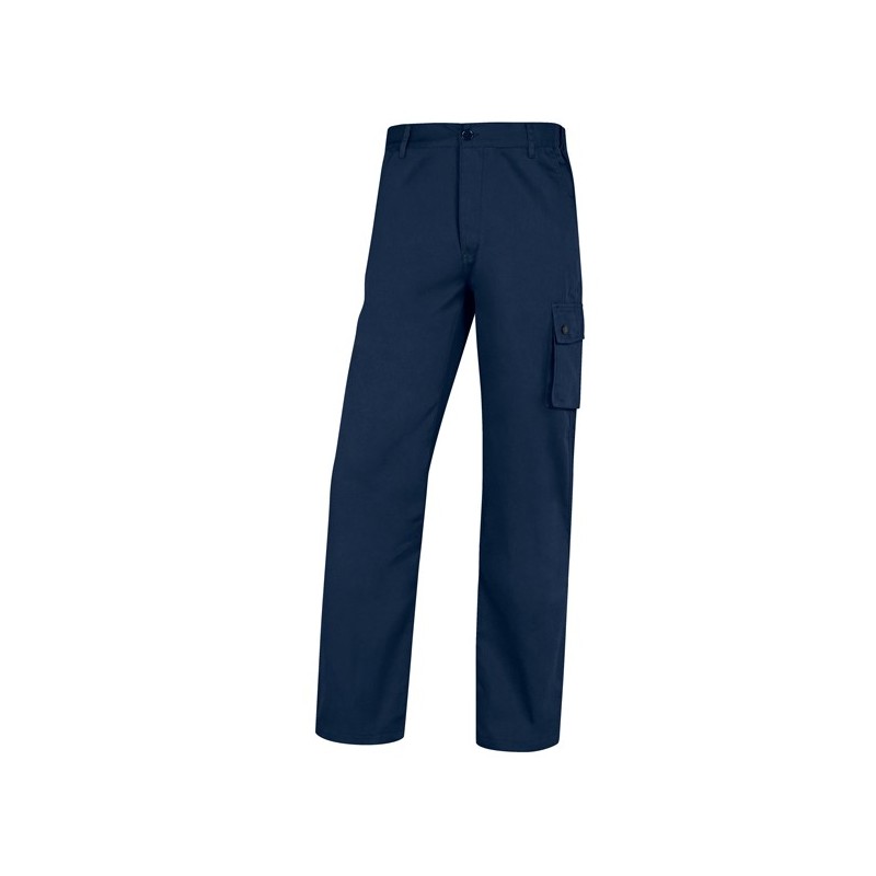 Linea di abbigliamento da lavoro in cotone, economica e confortevole. Pantaloni in cotone 100% con elastico in vita. 4 tasche di cui una portametro. Categoria DPI: 1. Certificazione CE. Conformità alla norma EN ISO 13688:2013.