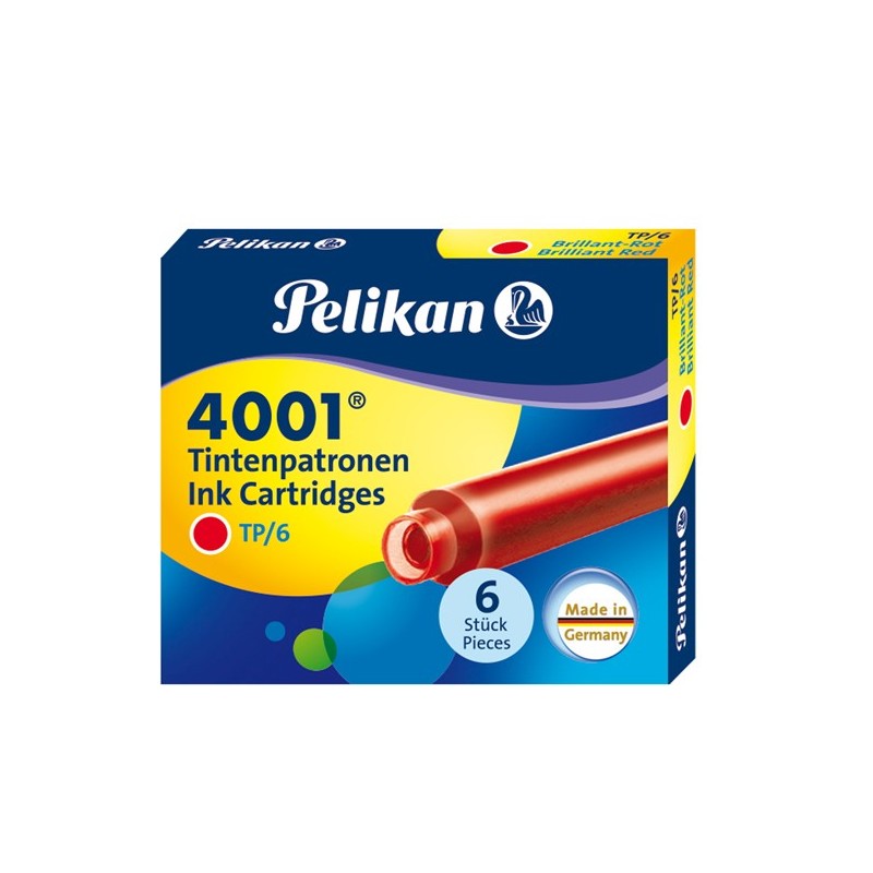 Cartucce adatte a qualunque stilografica. Inchiostro di ottima qualità. Permanente nei colori nero, rosso e verde; lavabile e cancellabile con cancellino Superpirat nel colore BluRoyal. Confezione da 6 cartucce. Colore: rosso.