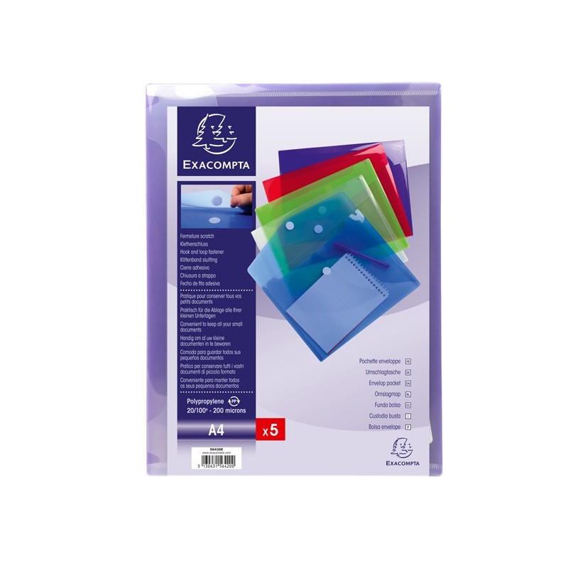 Ppl liscio 200 micron - F.to 24x32 cm per A4. Conf in 5 colori assortiti.