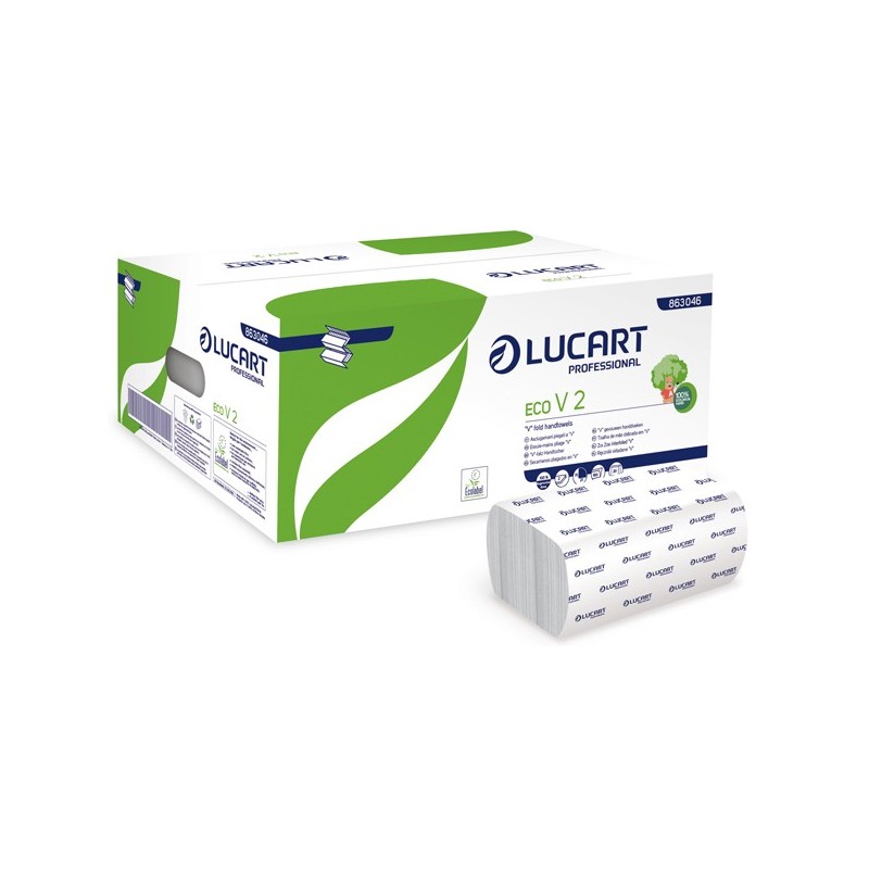 Asciugamani piegati a V Eco - 2 veli - goffratura corda - 21x21 cm - 19,5 gr - bianco - Lucart - conf. 190 pezzi