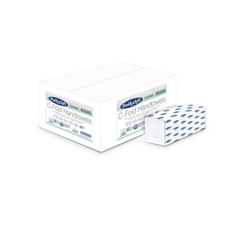Asciugamani piegati a C per estrazione singola. In mix di cellulosa a 2 veli, 18g goffratura micro. Formato aperto: 23x31cm.