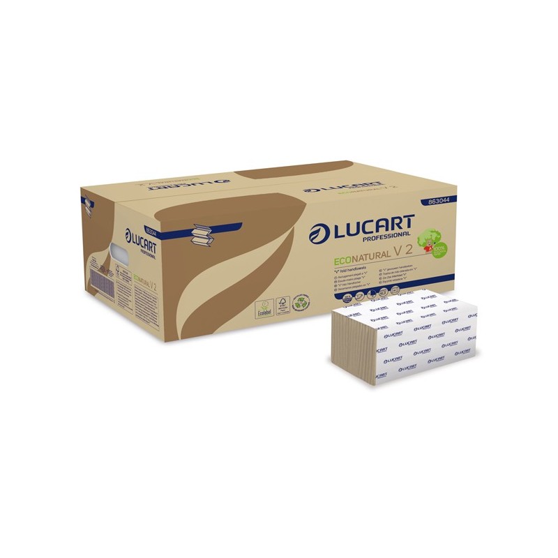 EcoNatural è la linea di prodotti realizzata in Fiberpack®, la materia prima ottenuta dal riciclo delle fibre di cellulosa presenti nei cartoni delle bevande. Asciugamani piegati a V per estrazione singola. Colore avana in Fiberpack® 2 veli, 19,5g goffratura a corda. Formato aperto: 21X21cm.