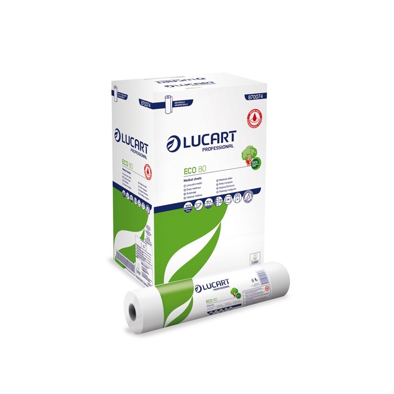 Lenzuolino medico 100% in carta riciclata rigenerata bianca. 2 veli 17,5g microgoffrato. Lunghezza del rotolo 80mt. Diametro rotolo: 14cm. Diametro interno: 4,5cm. Numero strappi 216. Lunghezza strappo 37cm. Altezza strappo 59cm.