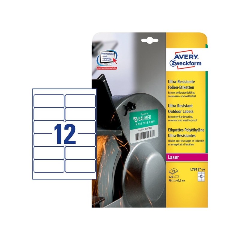 Etichette in polietilene per protezione e sicurezza - 99,1 x 42,3 mm - bianche - laser- 10 fogli - Avery