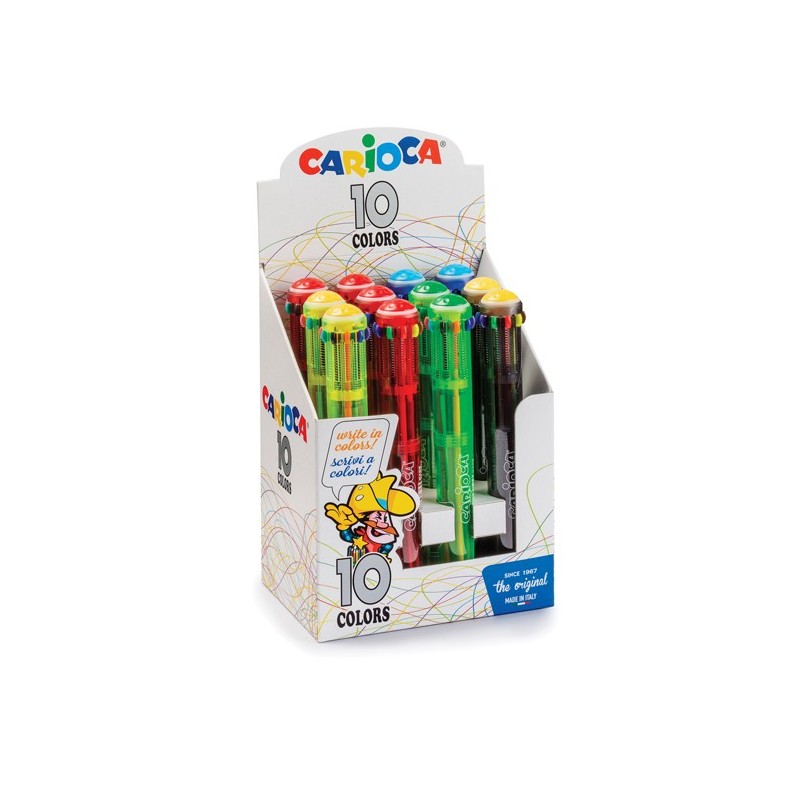 Penna a sfera automatica multicolore. La 10 colori è una dei prodotti più celebri della gamma Carioca.