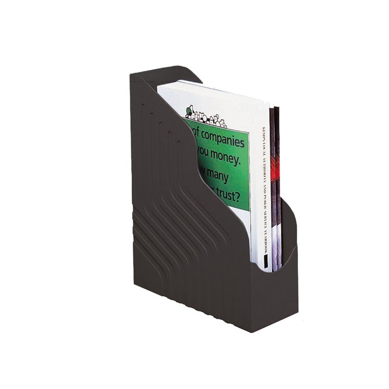 Portariviste serie Magazine Rack in polistirene antiurto in vari dorsi per capacità jumbo. Forti e robusti, ideali per fascicoli, cataloghi e come archivio di transito. Dimensioni: 25x32cm - dorso 10cm.