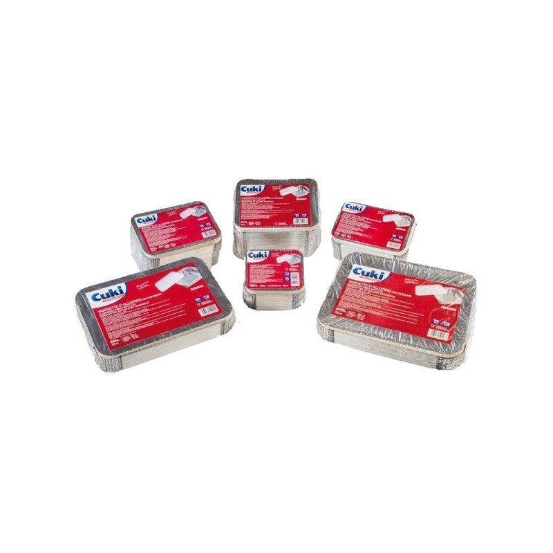 Contenitori in alluminio usa e getta con coperchio. Contenitore da 2 porzioni - 21,2x14,7x4cm.