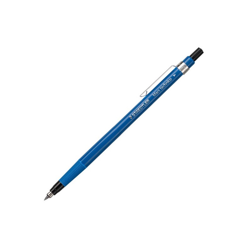 Portamine da 2mm per disegno, schizzi e scrittura. Impugnatura in metallo zigrinata antiscivolo. Clip in metallo.