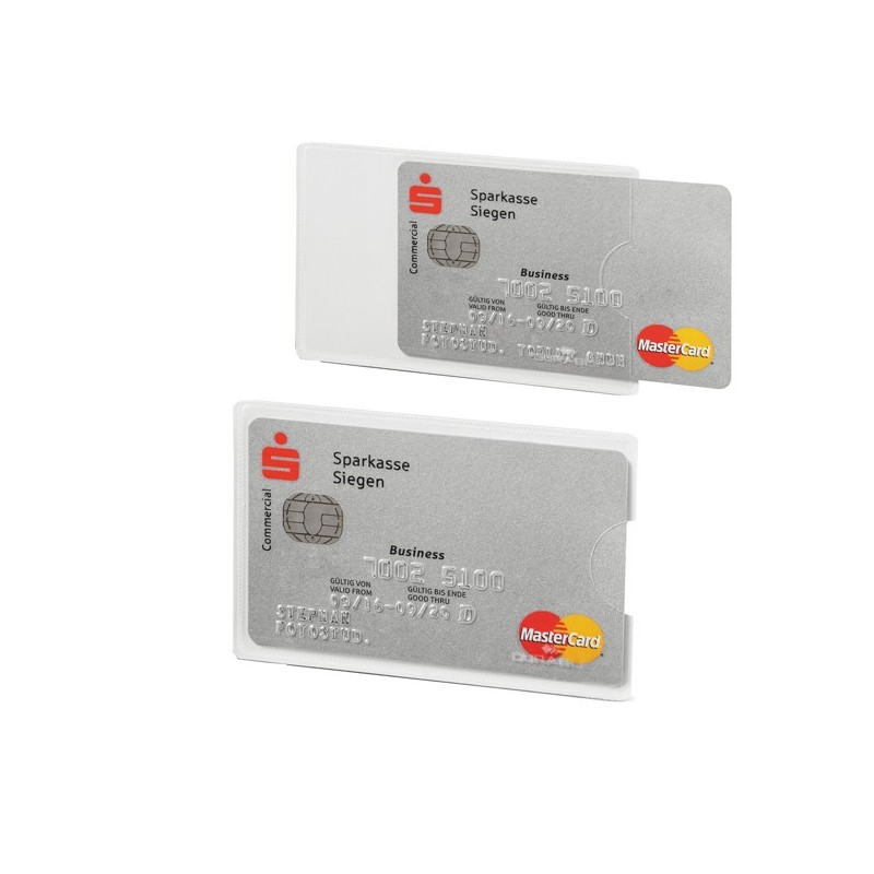 Tasca protettiva con fronte trasparente, contro la lettura non autorizzata dei dati personali. Per una carta di credito. Fornisce protezione dei dati RFID alla frequenza di 13.56 MHz. Dotata di lunetta laterale per un rapido accesso. Prodotto testato e certificato TÜV.