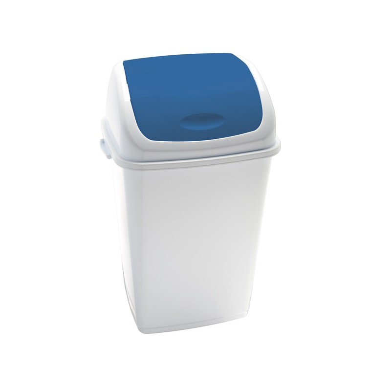 Pattumiera con coperchio basculante colore blu in polipropilene ad alta densità. Il coperchio basculante è utile come fermasacco. Contenitore stabile e di facile manutenzione. Il coperchio colorato è ideale per differenziare la raccolta. Dimensioni: L44 x P33 x H68cm - capacità 50 litri. Pulizia periodica da effettuare con un panno morbido e non abrasivo, imbevuto d’acqua. Detergenti che contengono solventi possono danneggiare il materiale.