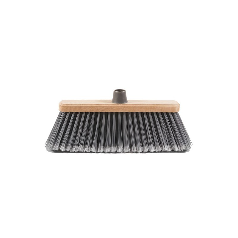 Scopa per esterni con coccia in legno. Ideale per cortili, piazzali, terrazze ecc. Composta da assicella in legno (faggio crudo) con boccola in polipropilene omopolimero. Scopa in PVC miscelato/ondulato a mezzo filo zincato. Adatta con manico in metallo 0032 (cod.74093).