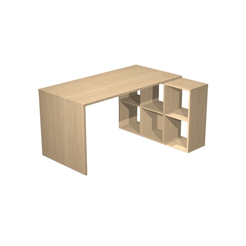 POSTAZIONE HOME-OFFICE L140 x P104 x H72,4cm. Tavolo 140x69cm - H72,4cm. Casellario 104x29,2cm - H 69,8cm. Realizzata in melaminico bilaminato antigraffio e antiriflesso (sp. da 16 a 22 mm). L’ampia superficie di lavoro (140 x 69 cm, sp. 22 mm) è sorretta da un lato da un solido fianco (sp. 22 mm) e dall’altro da una pratica libreria a 6 o a 9 caselle (sp. 16 mm). Le librerie sono completabili con set 2 cassetti, set 2 antine in melaminico e antina in vetro collocabili all’interno delle caselle. Ogni casella misura cm 32,5 x 32,5 ed ha una profondità utile di 29 cm.
