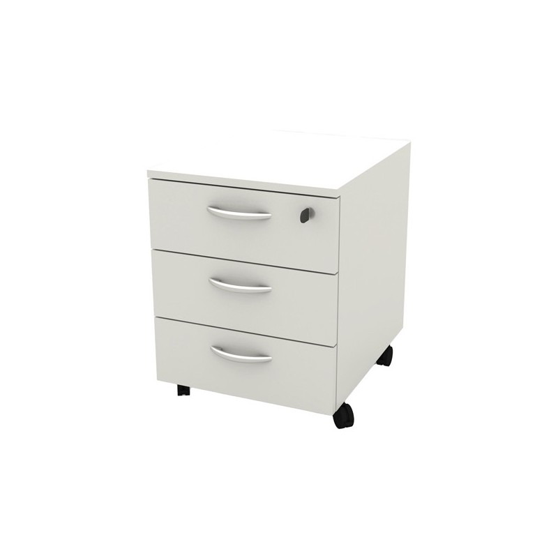 Cassettiera a 3 cassetti su ruote. Serratura sul primo cassetto, guide metalliche. Dimensioni utili dei cassetti: L31,8 x P38,3 x H10,9cm. Dimensione totale: L41 x P50 x H52,2cm. Colore struttura e dei cassetti: bianco. Fornita in kit DA ASSEMBLARE.