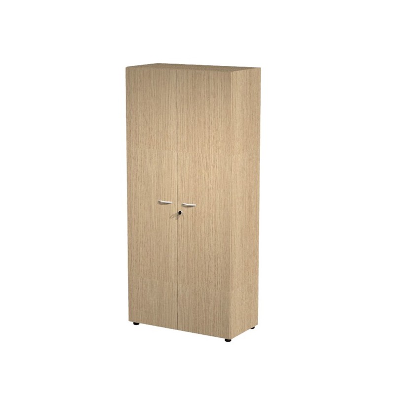 Armadio a 2 ante battenti alte con serratura. 3 ripiani spostabili + 1 fisso. Dimenzioni: L90 x P45,8 x H200 cm. Linea di armadi componibile particolarmente robusti e stabili, costituiti da struttura alta 200cm e completabili con sopralzo alto 40cm. Grande profondità di 46cm e larghezza di 90 cm. Struttura spessore 18mm. Lato posteriore rifinito da ambo i lati con pannello rigido in spessore 10 mm. Ripiani interni in sp. 25mm. Piedini regolabili per la massima stabilità.