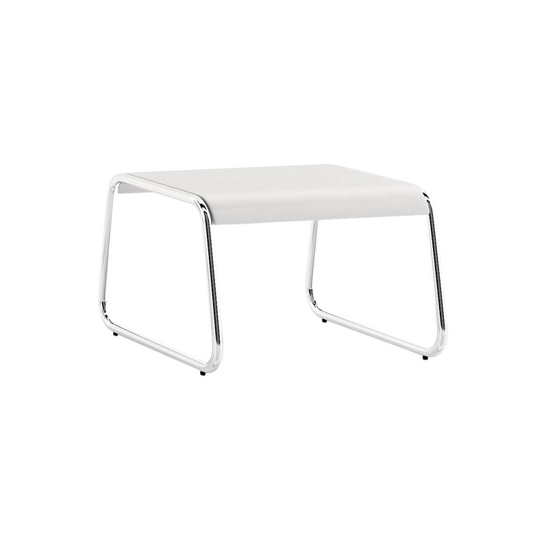 Tavolo basso portariviste struttura acciaio cromato e piano in mdf laccato colore bianco. Alt.tot: 44cm; Prof.tot: 60cm; Largh.totale: 60cm.